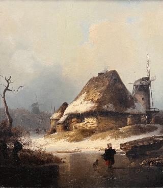 am 6. November wurde dieses Bild von Friedrich August de Leuw unter dem Titel: "Junge Holzsammlerin auf dem Eis" bei Auktionshaus VENDUEHUIS in Den Haag versteigert.